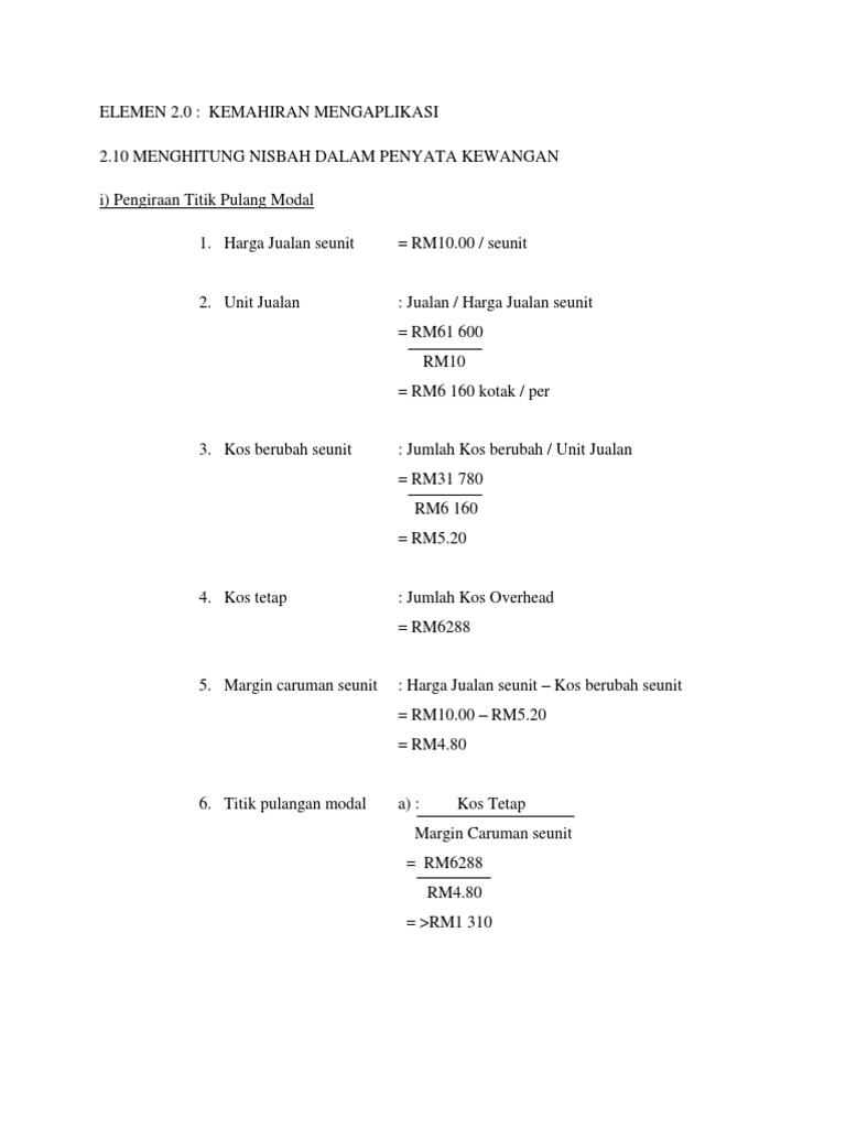 Margin caruman seunit RM20000. Pages 39 Ratings 100 1 1 out of 1 people found this document helpful. Jika anda mengeluarkan lebih dari satu produk formula titik pulang modal yang lain akan diguna pakai.